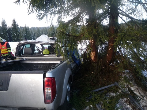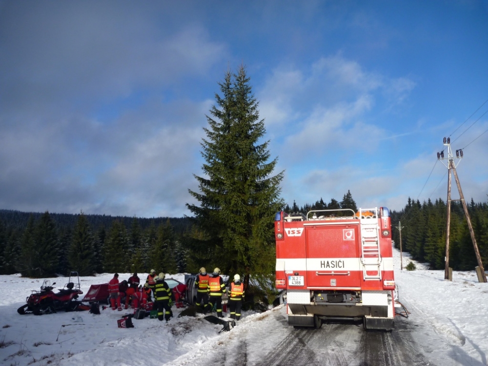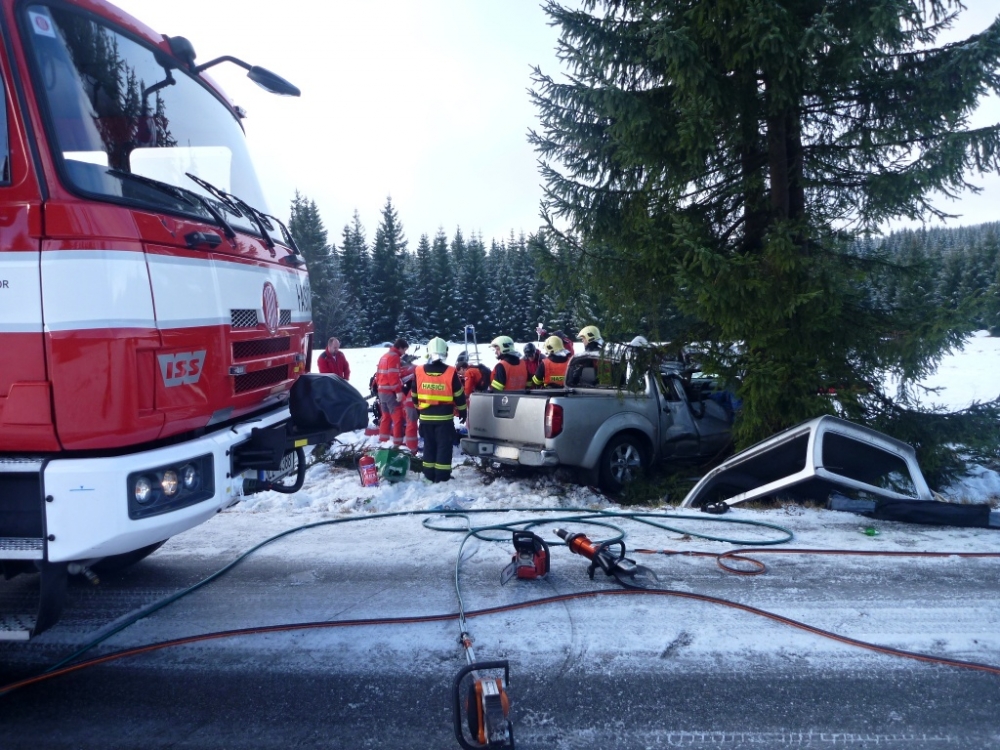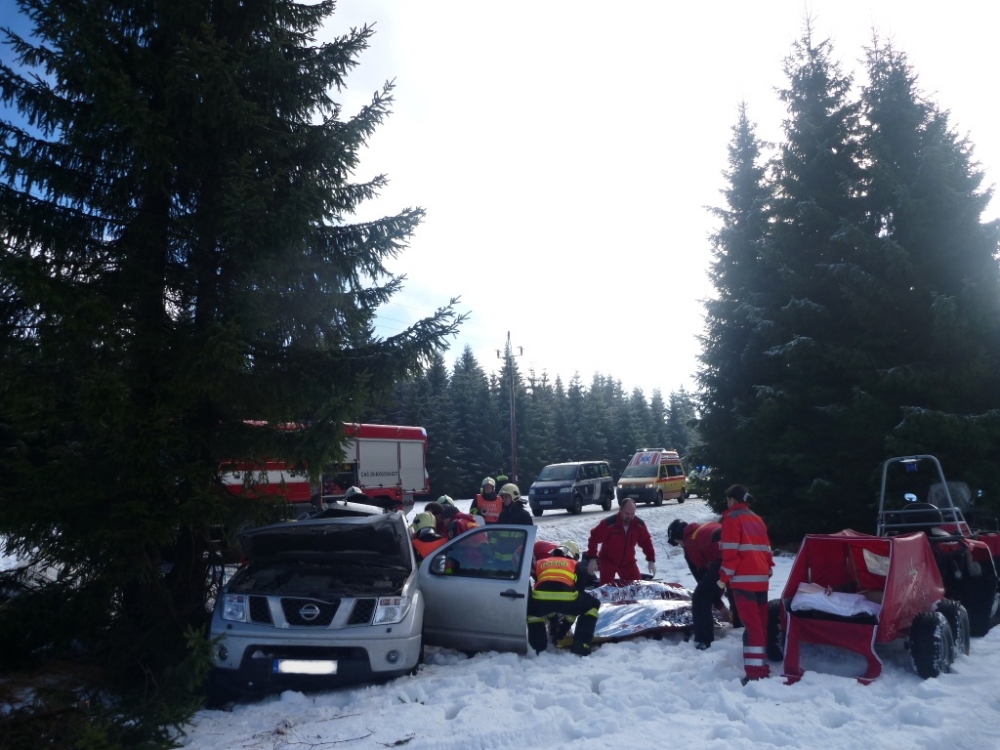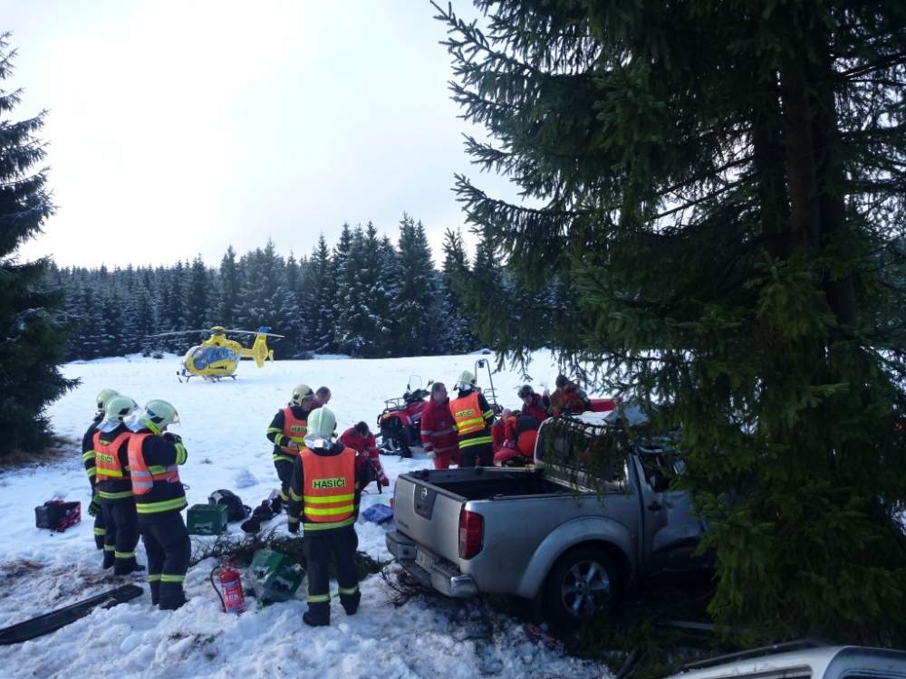 Hasiči vystříhávali z terénního auta u Jizerky těžce zraněnou ženu