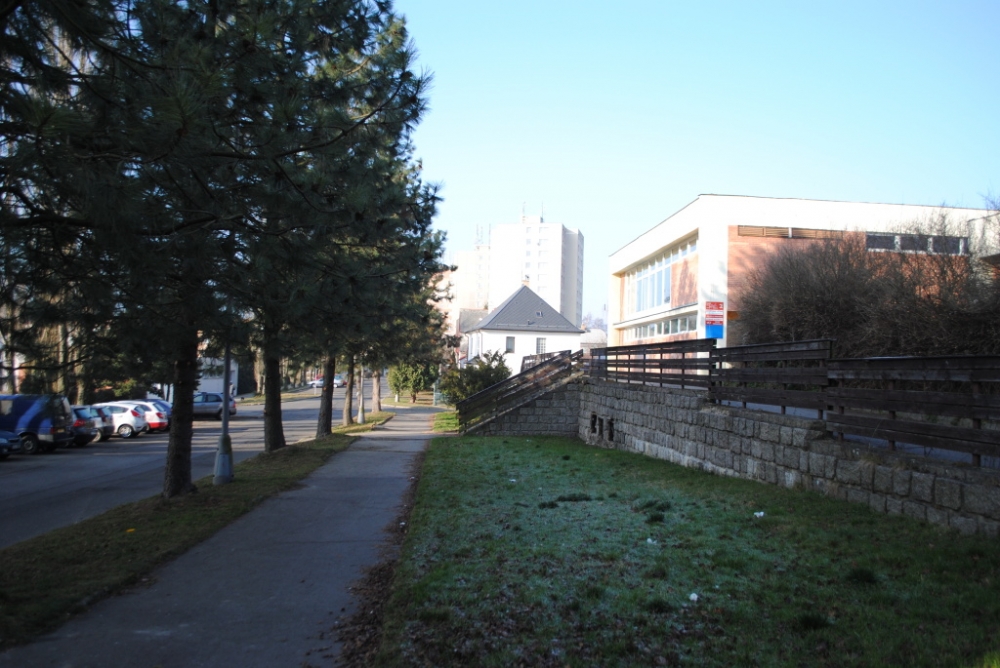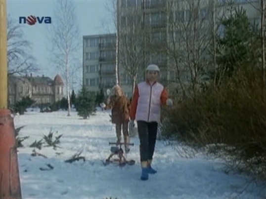 Trochu oříšek. Karfík čeká na autobus a potká svého žáka Jokla. Jenže tady žádná zastávka ve skutečnosti není, také tu vyrostlo už pár stromů. Jsme v Jabloňové ulici.