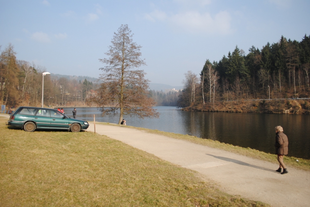 Hned v prvním díle se učitel Karfík prochází po přehradě.