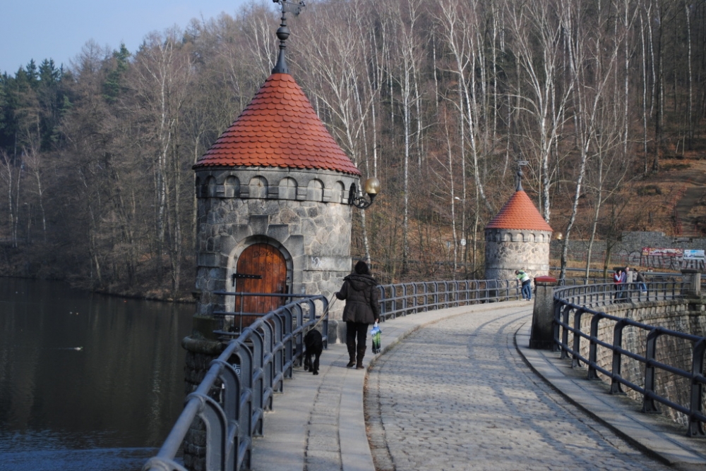 Hned v prvním díle se učitel Karfík prochází po přehradě.