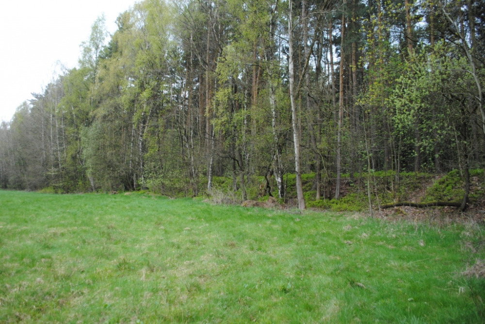 6. Zarostlé dálniční těleso směrem ke Spáleništi. Vpravo les.