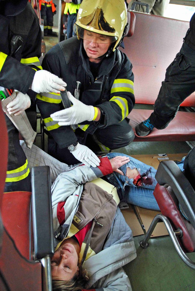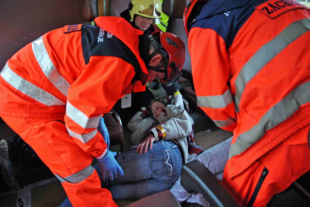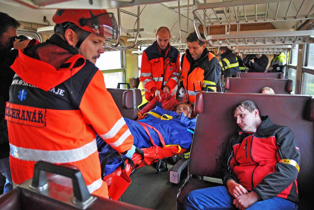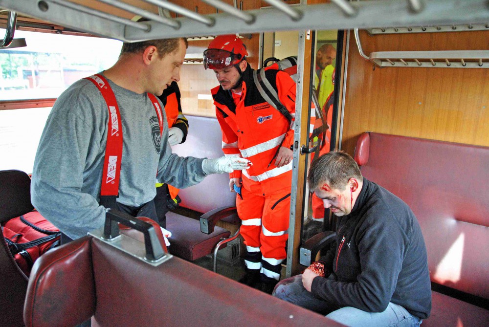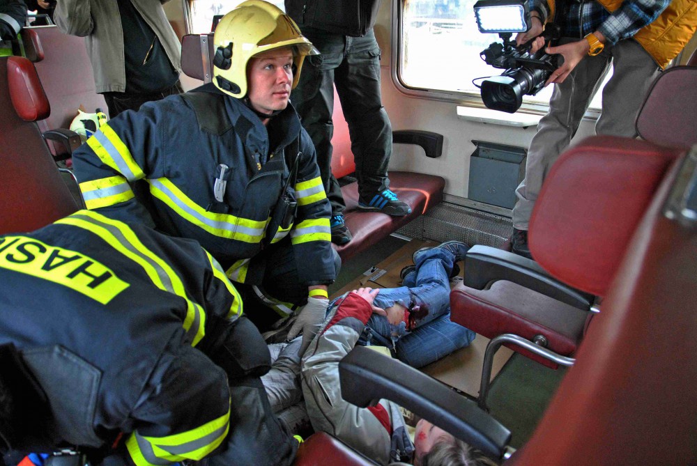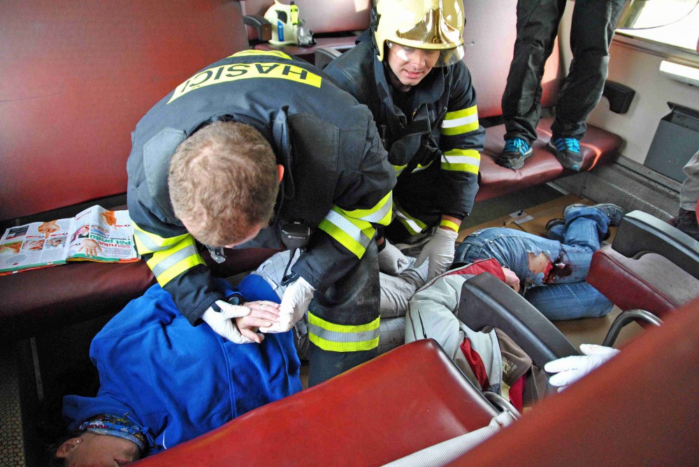 Cvičení hasičů: Srážka vlaku s mnoha zraněnými