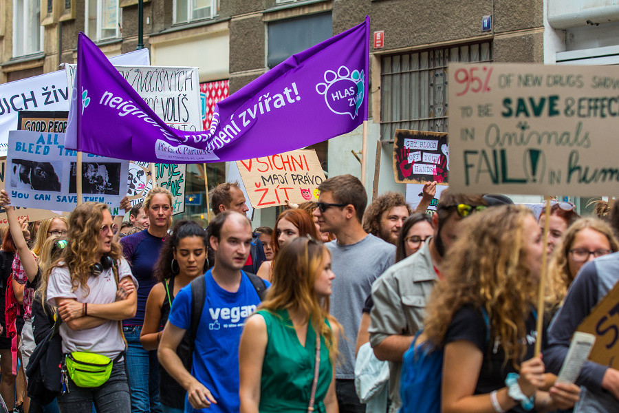Pochodu za práva zvířat se zúčastnily stovky lidí