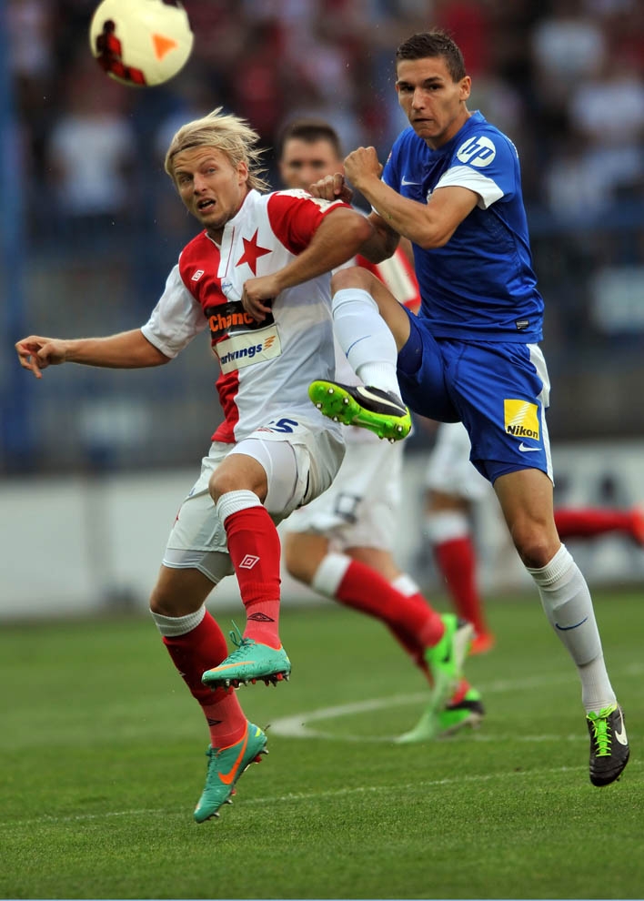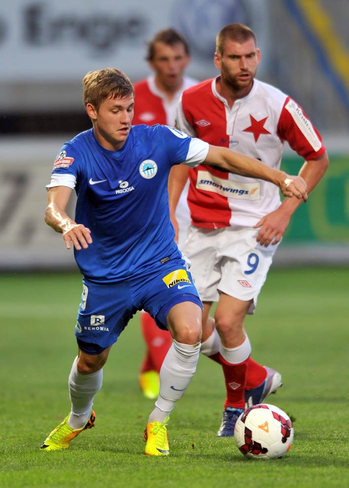 Radost. Kušnír přihrál na oba góly, Delarge zaměstnával obranu Slavie