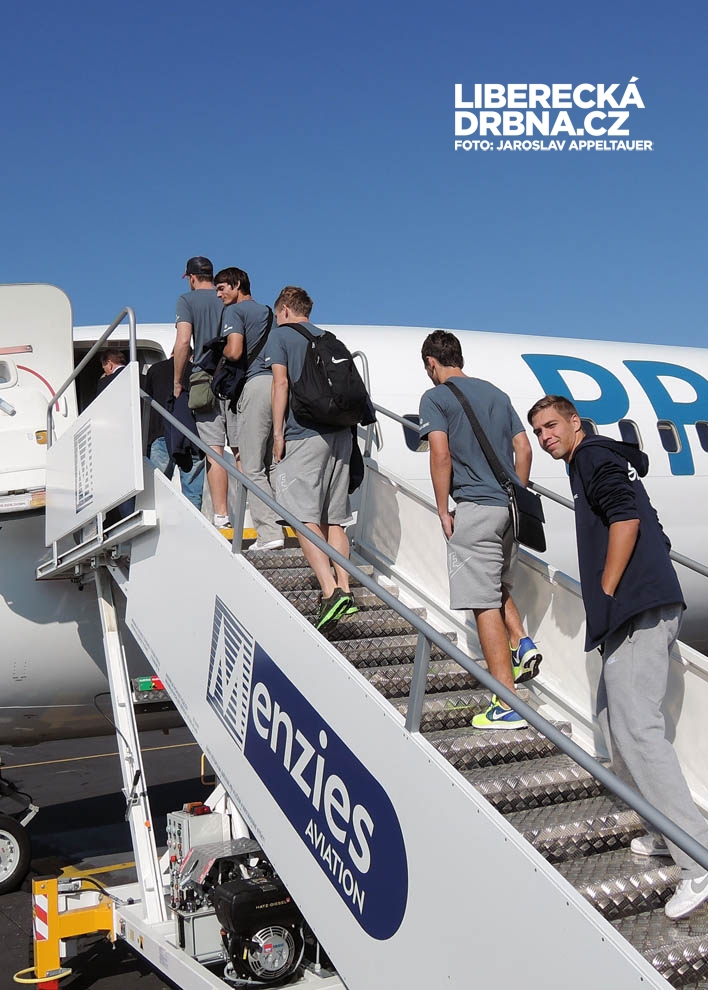 Fotbalisté nastupují do letadla. Jako poslední jde mladík Hdaščok