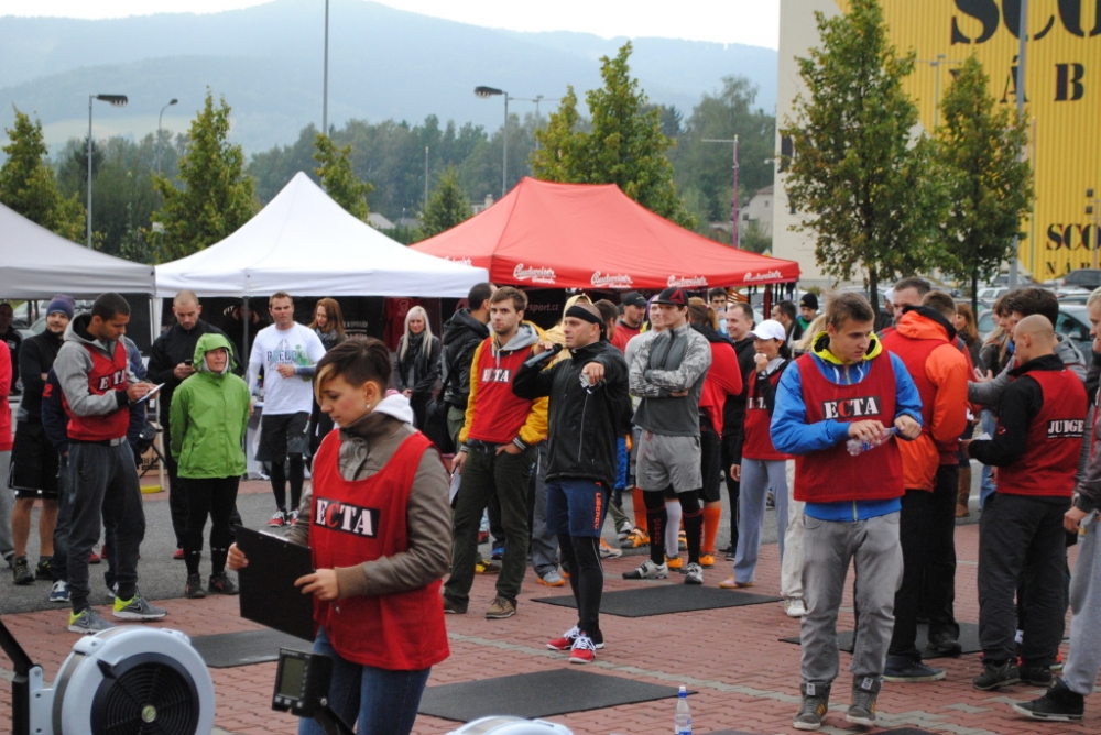 Na začátku ještě byly úsměvy, v první disciplíně ale účastníci museli ujet kilometr na veslařském trenažéru