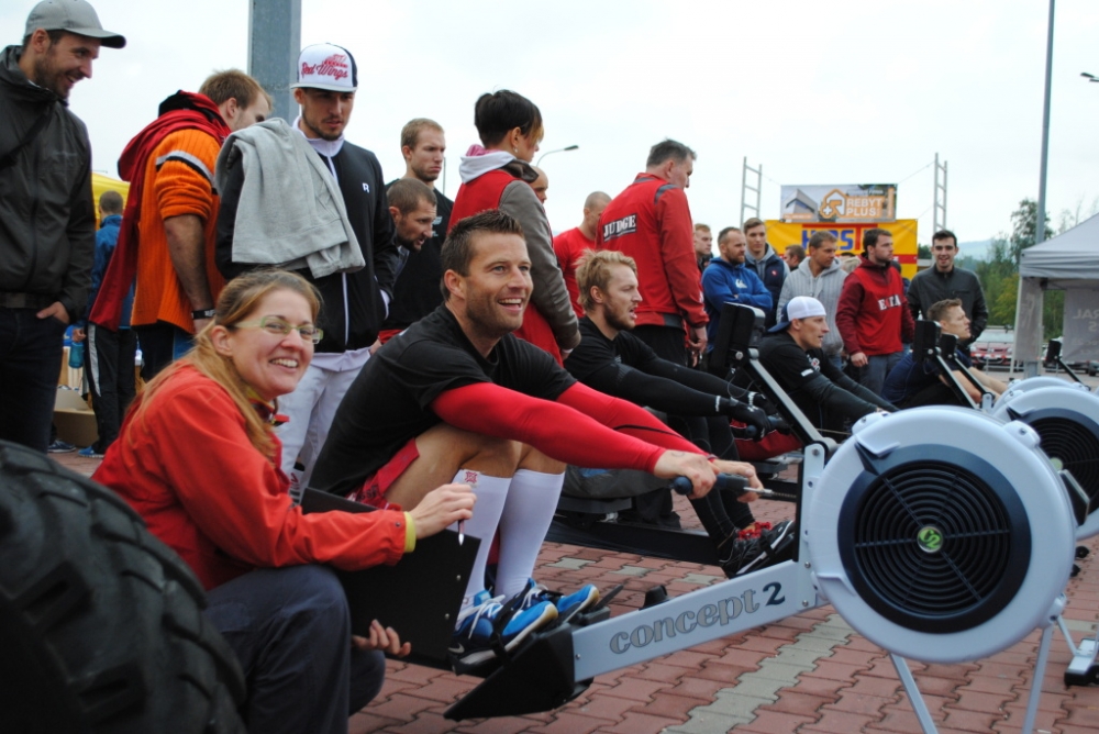 Na začátku ještě byly úsměvy, v první disciplíně ale účastníci museli ujet kilometr na veslařském trenažéru