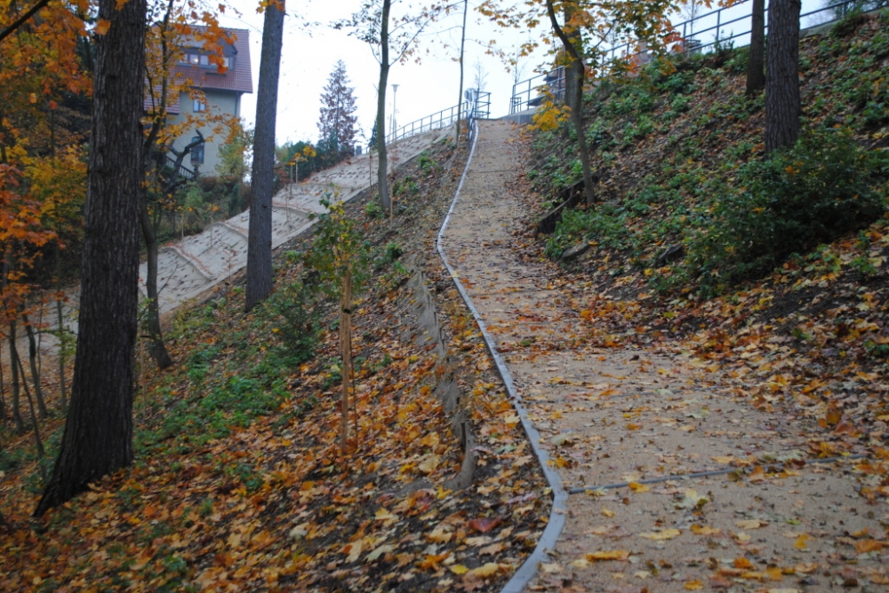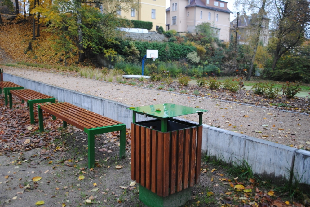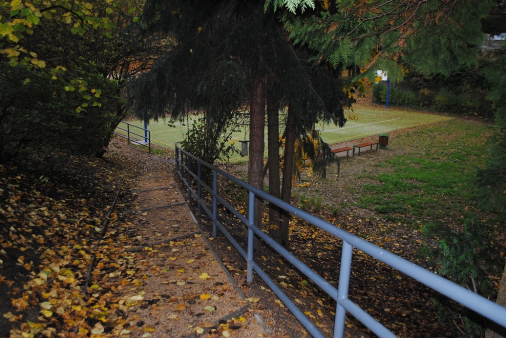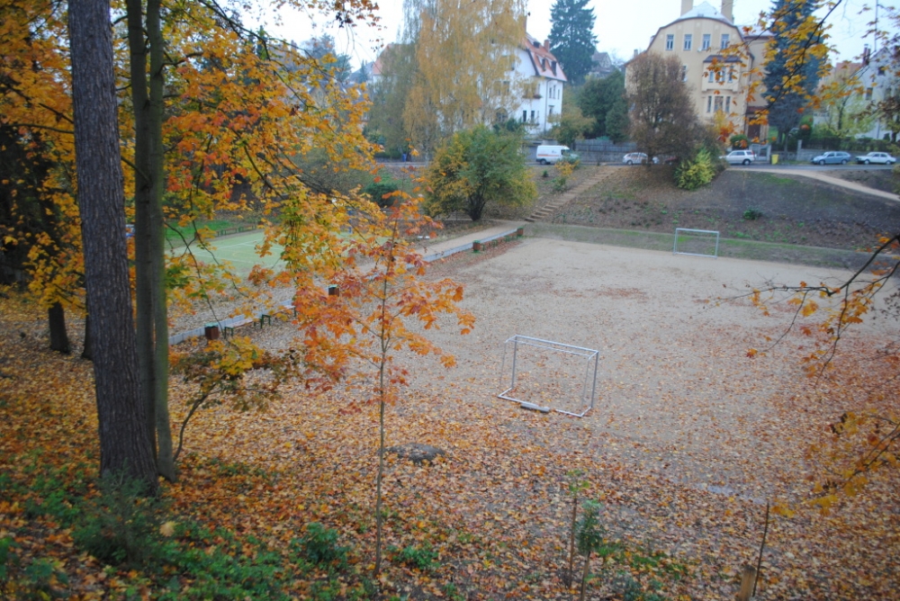 Obnovené hřiště. Přístup k němu je po několika cestách, či schodech