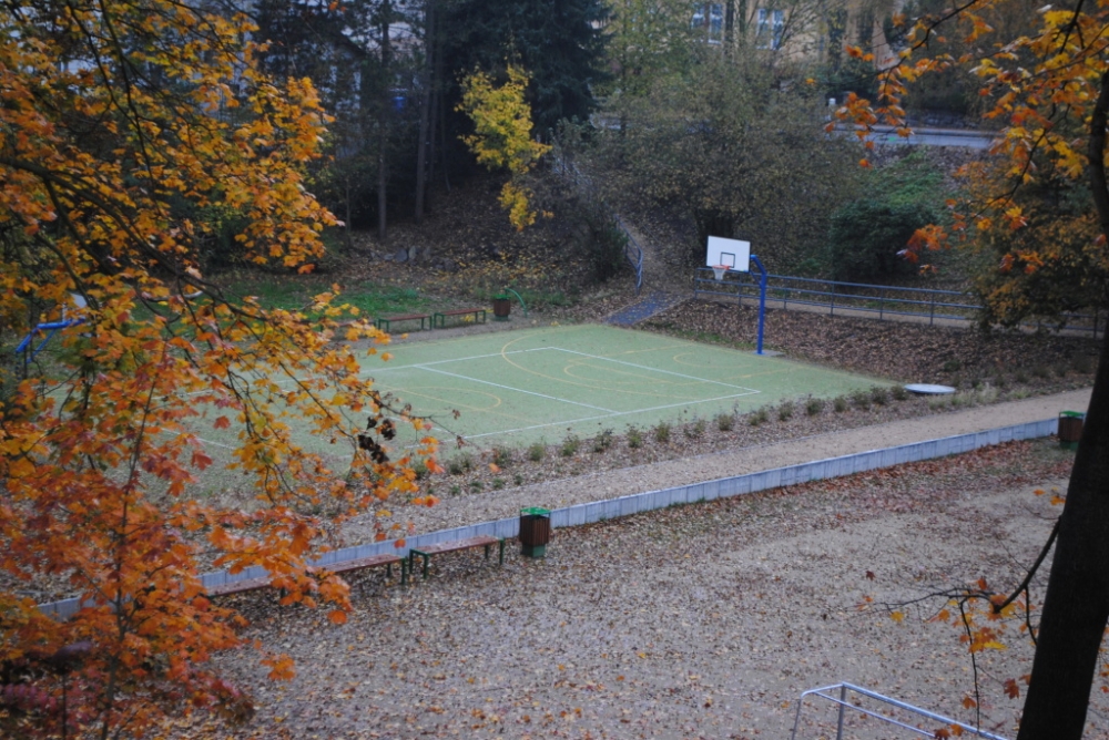 Obnovené hřiště. Přístup k němu je po několika cestách, či schodech