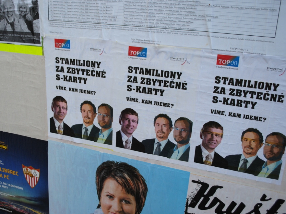 Plakátovací plochy jsou obsazeny politiky. Andrej Babiš je ve společnosti Rusalky