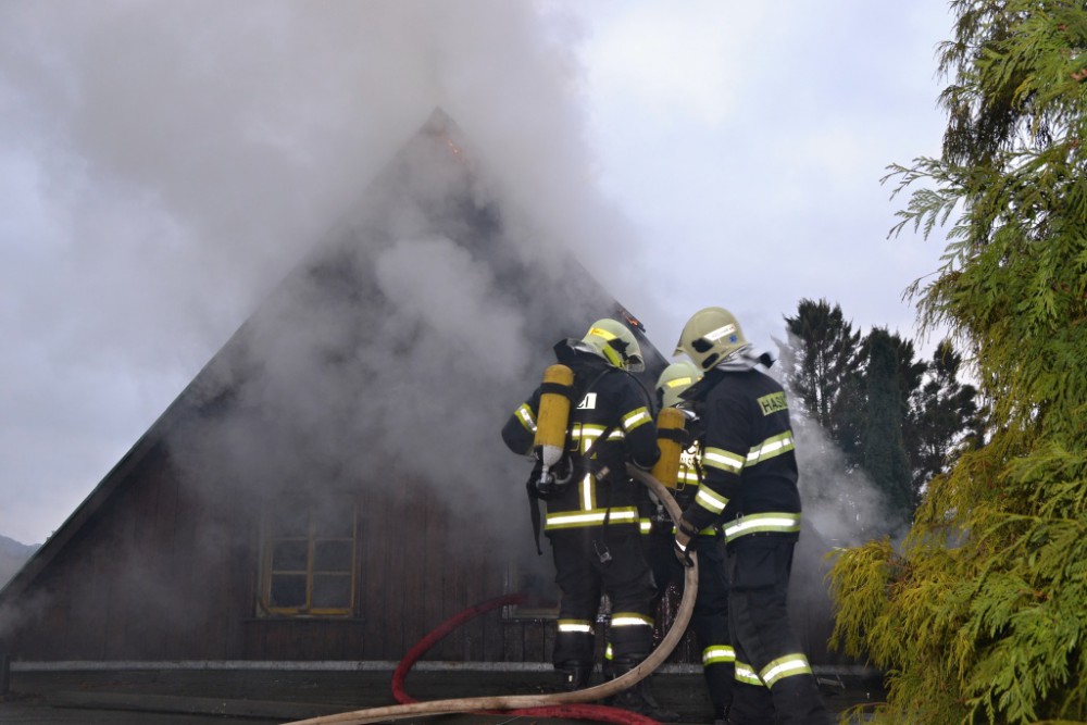 Večerní požár rekreačního objektu napáchal statisícové škody. V domě se udusili dva psi