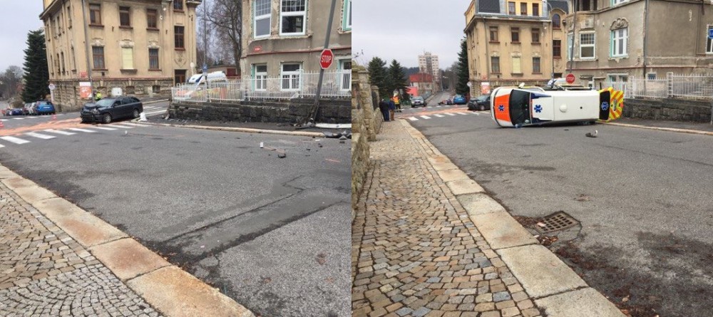 U jablonecké nemocnice se střetla sanitka s osobákem, čtyři zranění