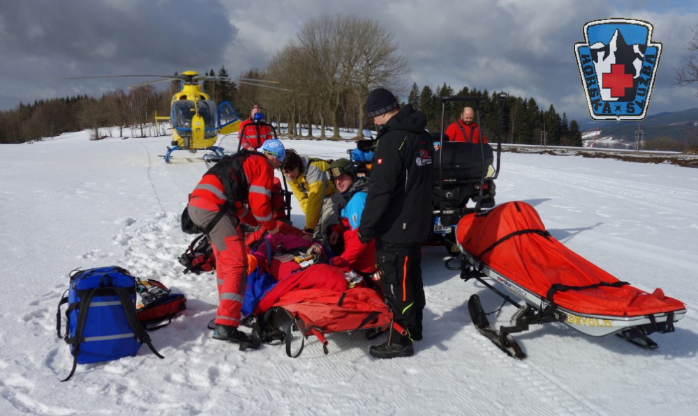 Vážný úraz mladé lyžařky v Jizerkách. Narazila do hrazení a do nemocnice letěla vrtulníkem