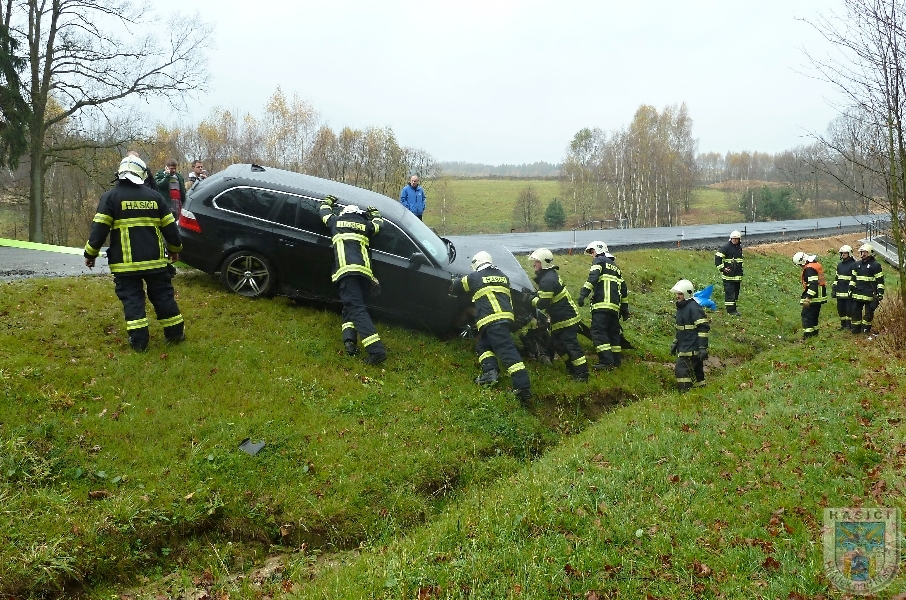 Bavorák skončil po nárazu do betonové zábrany v příkopu. Foto: Hasiči Hrádek nad Nisou