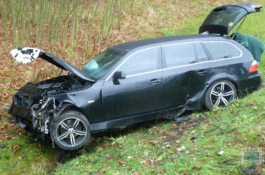 Bavorák skončil po nárazu do betonové zábrany v příkopu. Foto: Hasiči Hrádek nad Nisou
