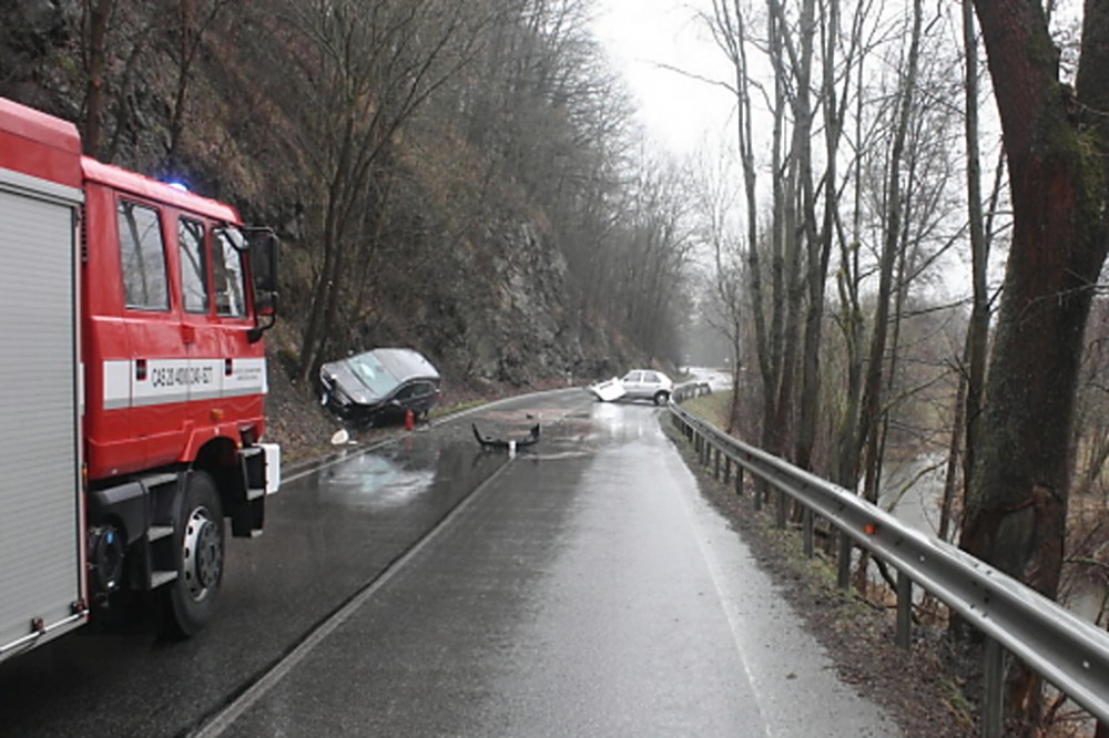 Řidička felicie nezvládla zatáčku. Vyjela do protisměru a střetla se s protijedoucím autem