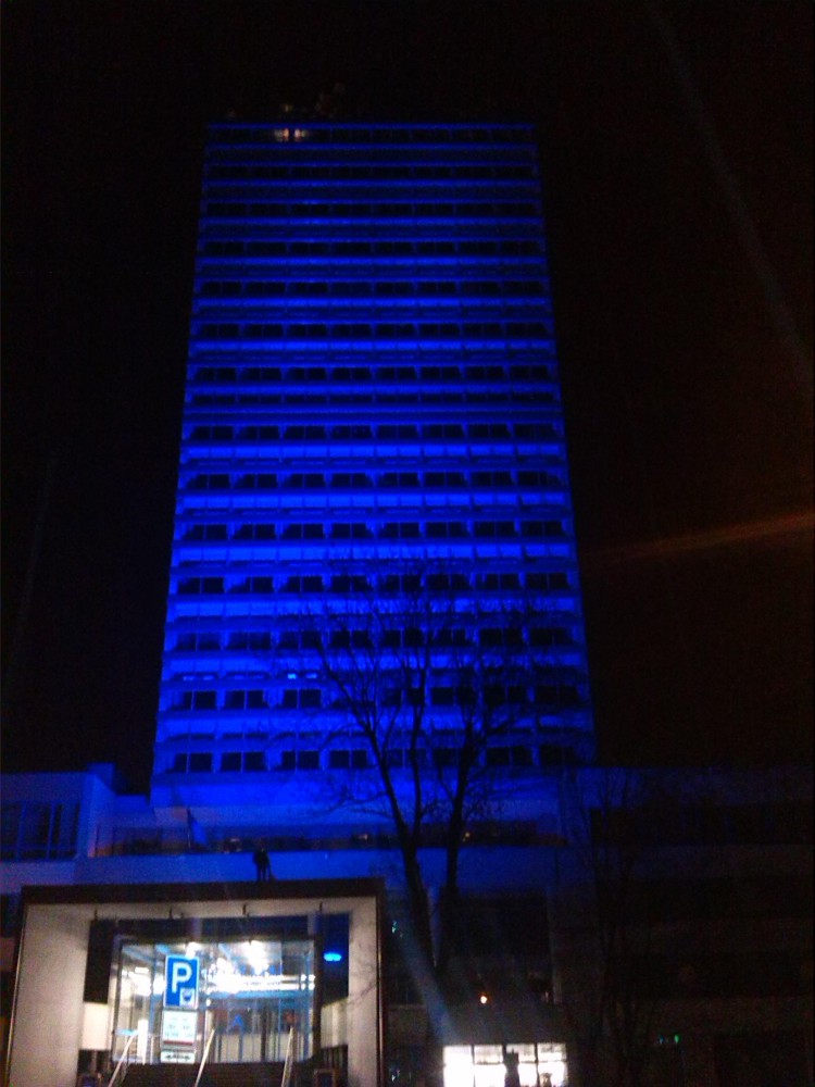 "Liberecký mrakodrap" se o víkendu rozsvítí v modrých barvách