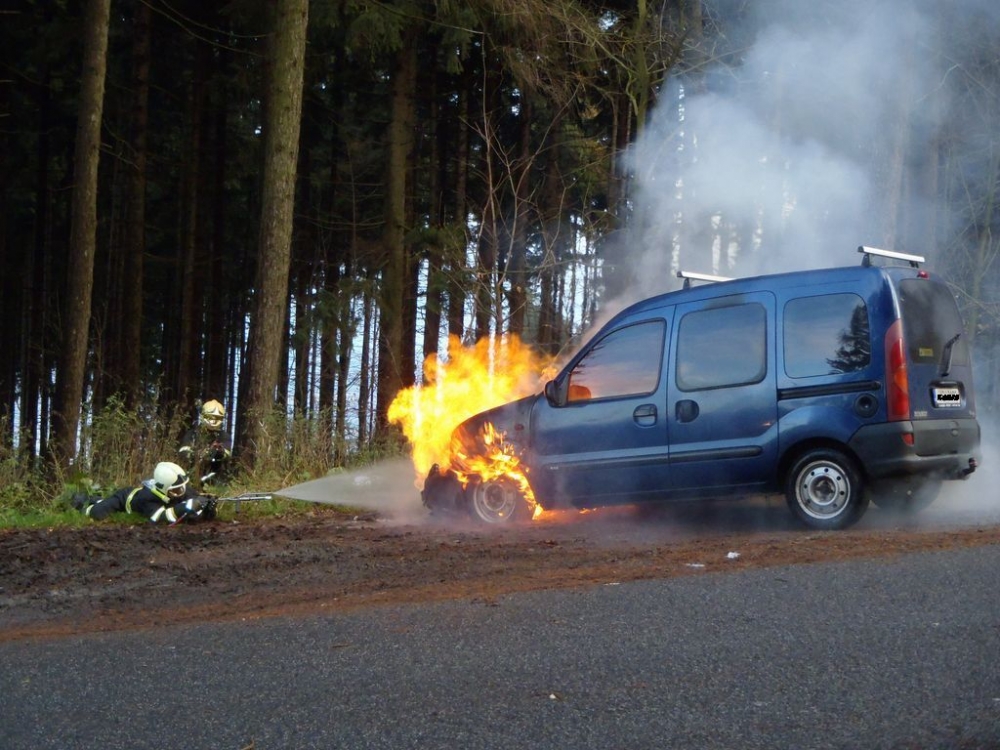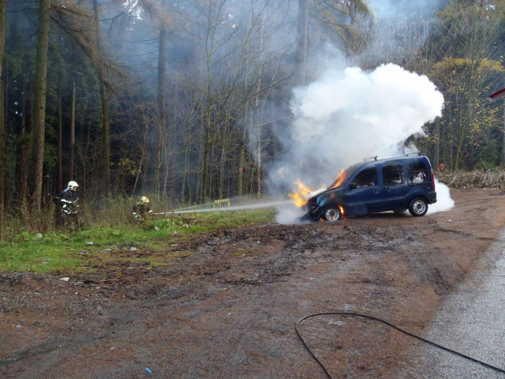 Renault Kangoo téměř lehl popelem. Foto: HZSLK/Radek Poloprutský