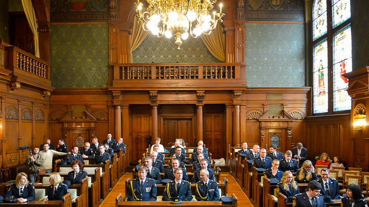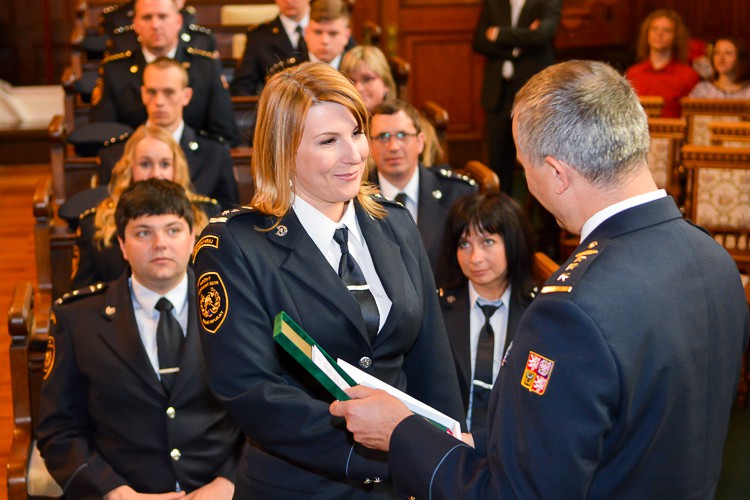 FOTO: Hasiče ocenili za dlouholetou službu. V obřadní síni dostali medaile za věrnost