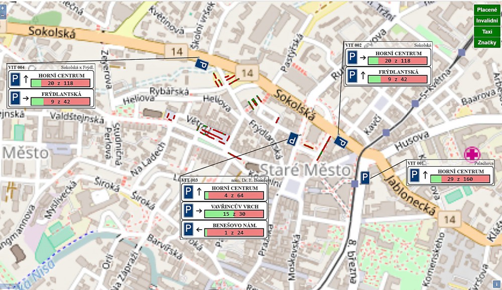 Kde zaparkovat? Obsazenost parkovišť v horním centru lze sledovat online