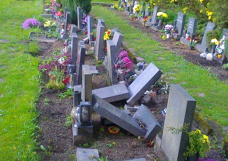 Poničené hroby na libereckém hřbitově