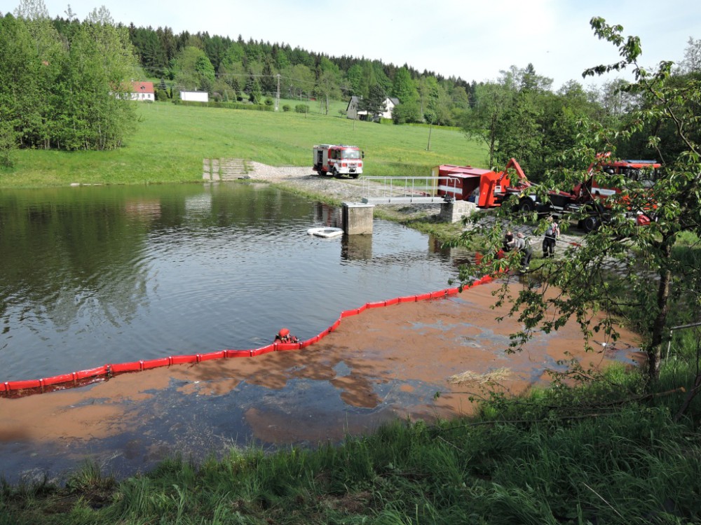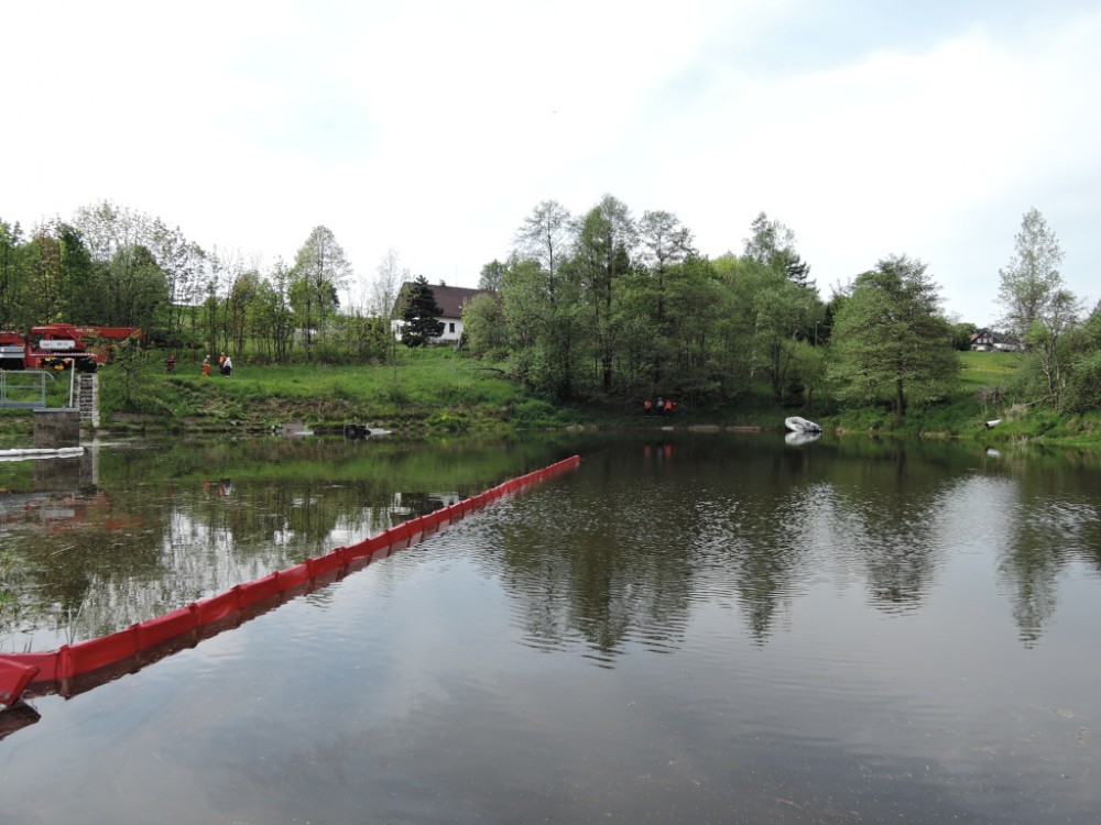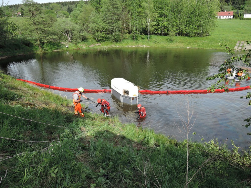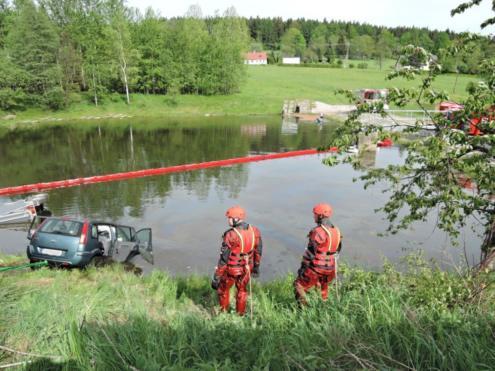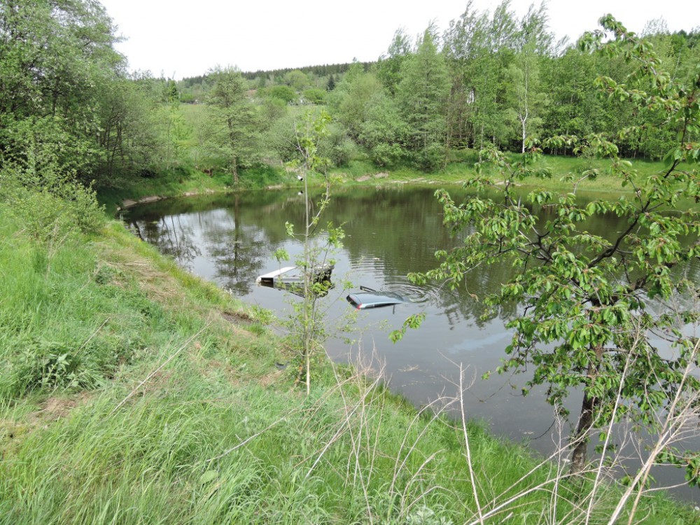 FOTO: Auto vjelo do rybníka. Řidič i spolujezdkyně se stihli dostat ven bez zranění