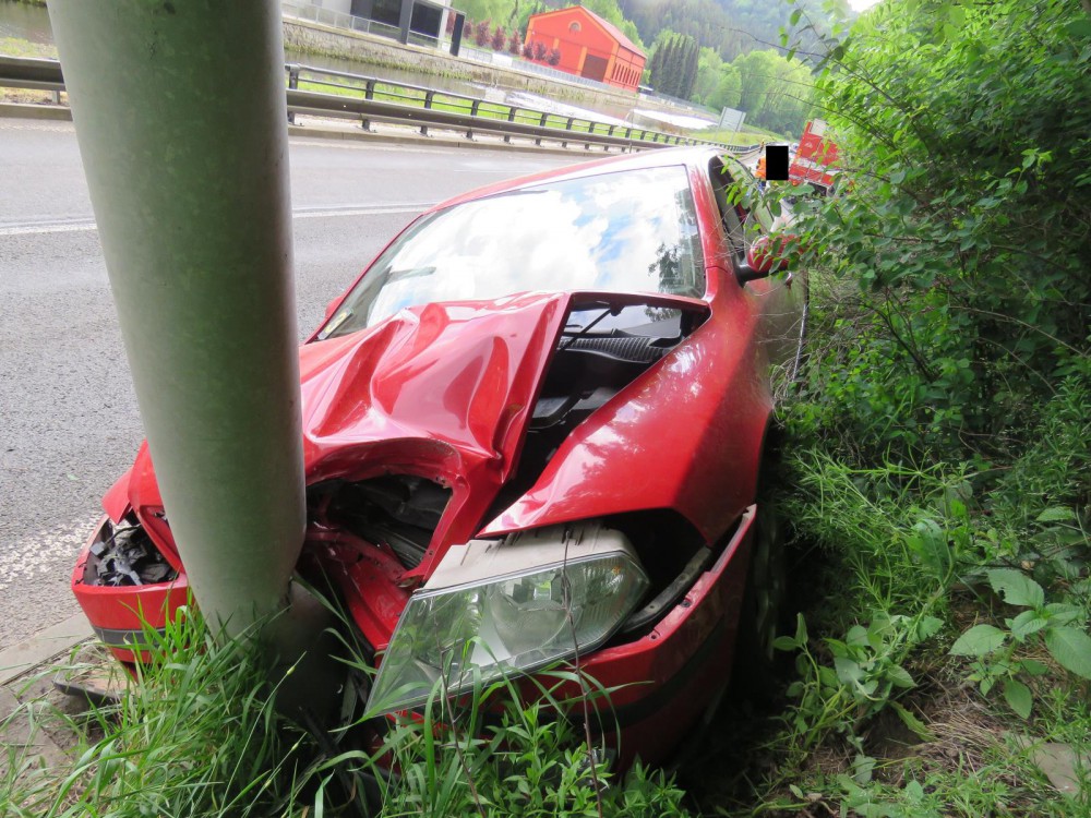 Na rovném úseku silnice řidič usnul a Octavii obtočil kolem sloupu. Z nehody vyvázl bez zranění