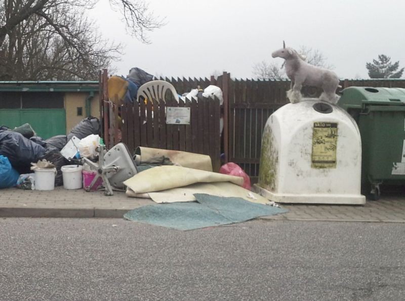 Nepořádek u kontejneru