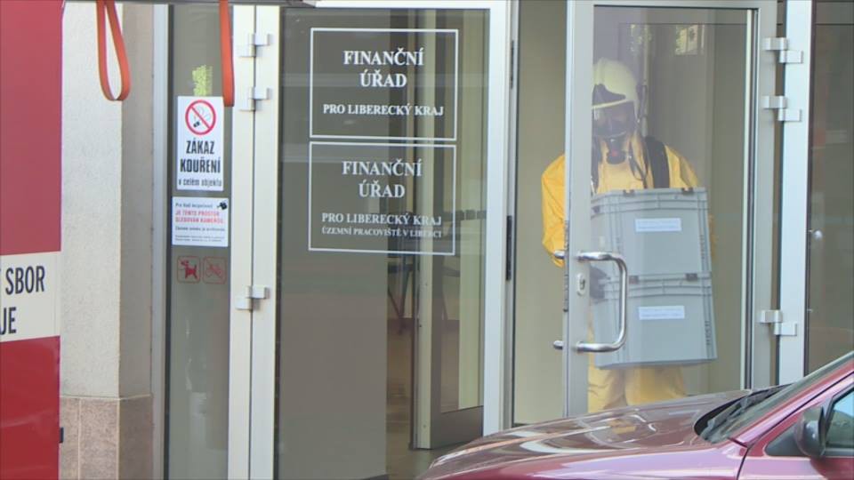FOTO: Na finančním úřadě zasahovali hasiči, úředníky vyděsila podezřelá zásilka