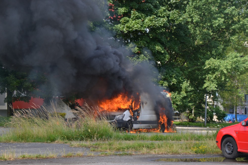 Požár dodávky naložené tlakovými lahvemi zaměstnal hasiče na celý den
