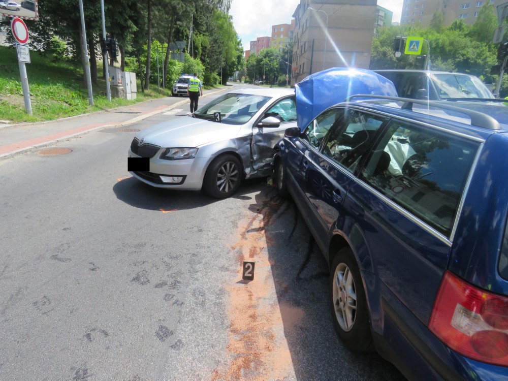 Srážka dvou aut na světelné křižovatce. Oba řidiči tvrdí, že jeli na zelenou