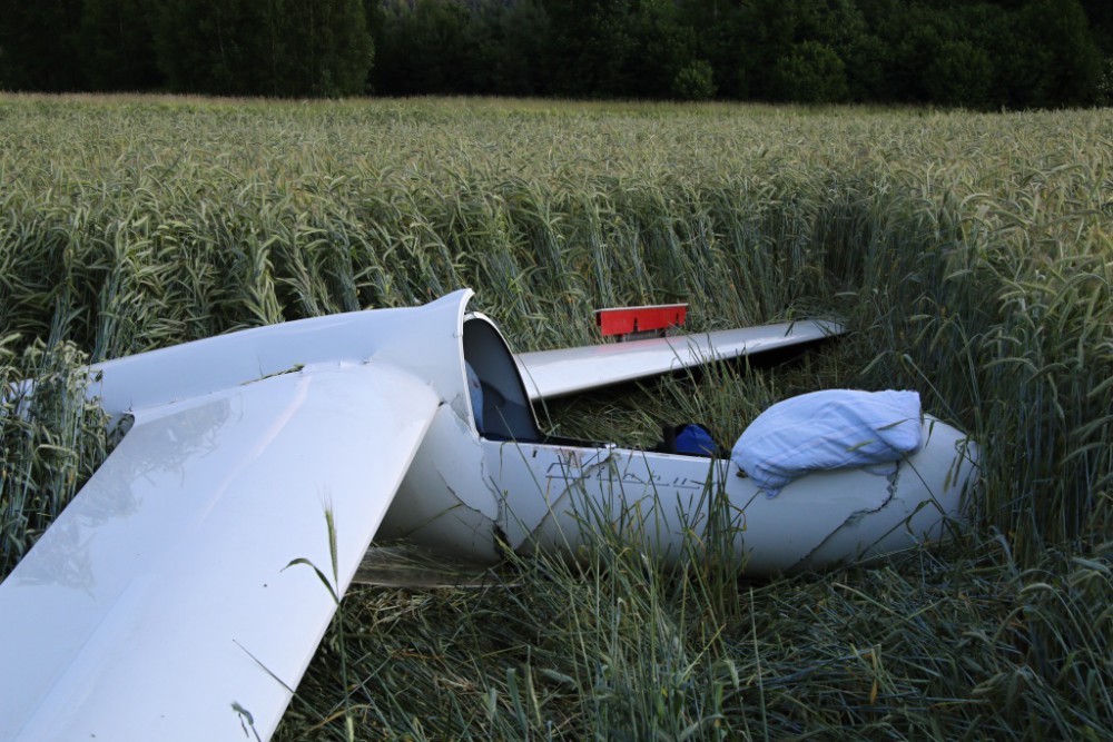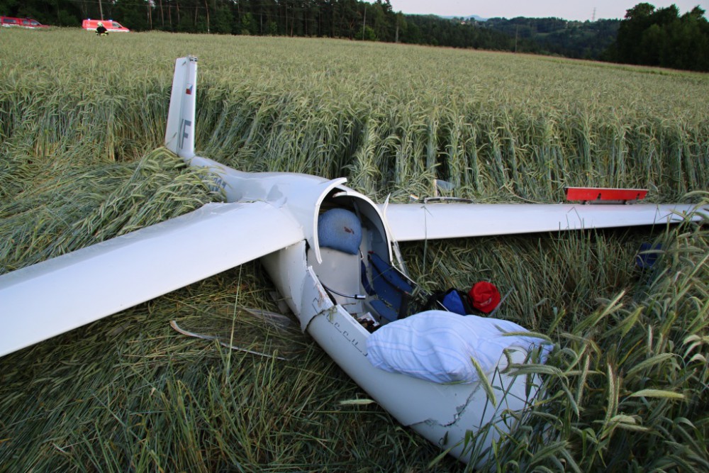 FOTO: Poblíž Hodkovic nad Mohelkou spadl větroň, pilot se vážně zranil