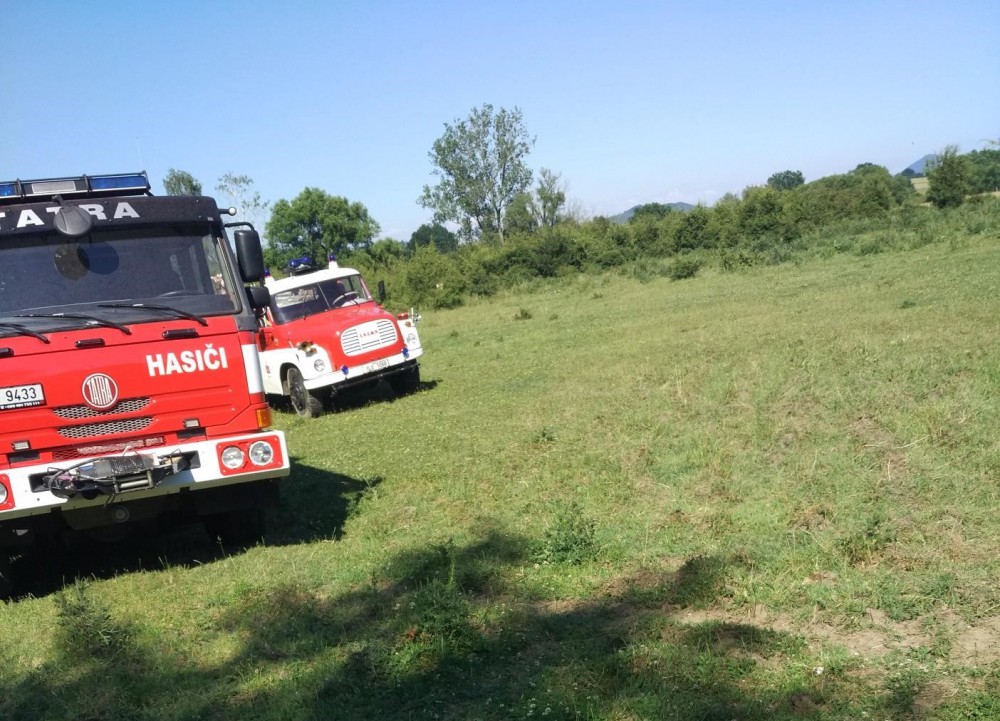 Hasiči na pastvině.