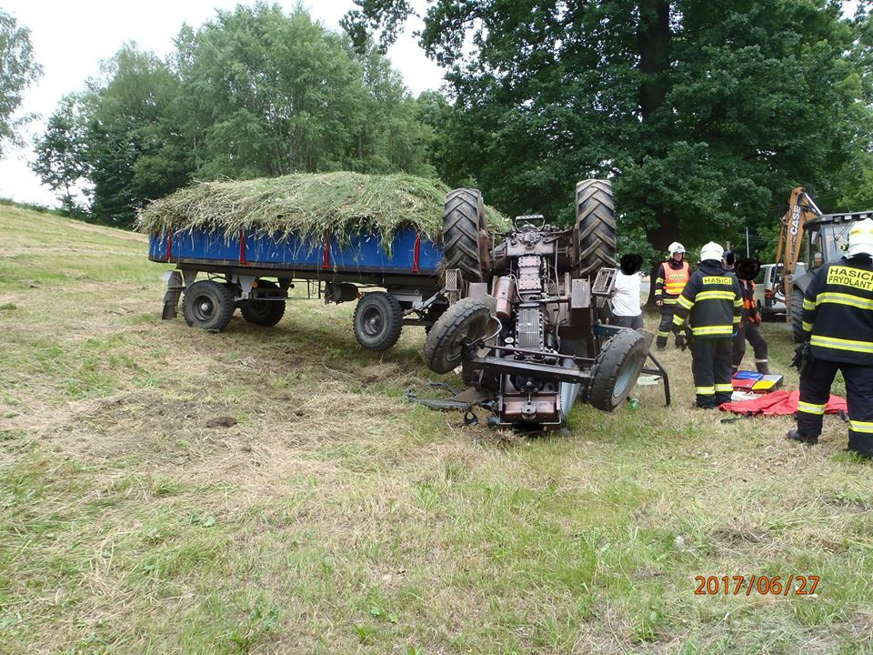 V Horní Řasnici se převrátil traktor. Při nehodě se zranila jeho dvoučlenná posádka