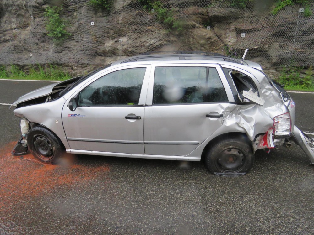 Řidič Fabie nezvládl řízení na rozlité naftě, narazil do skály