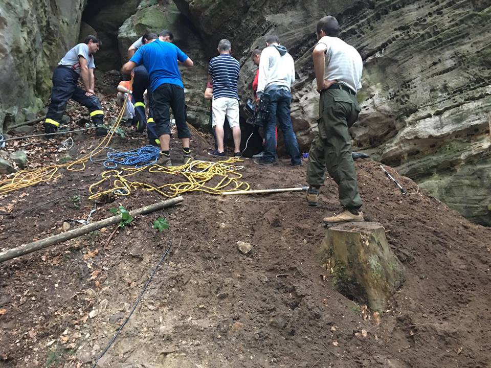 VIDEO: Záchranáři šestý den bojují o život psa. Zůstal ve skalách zavalený v liščí noře