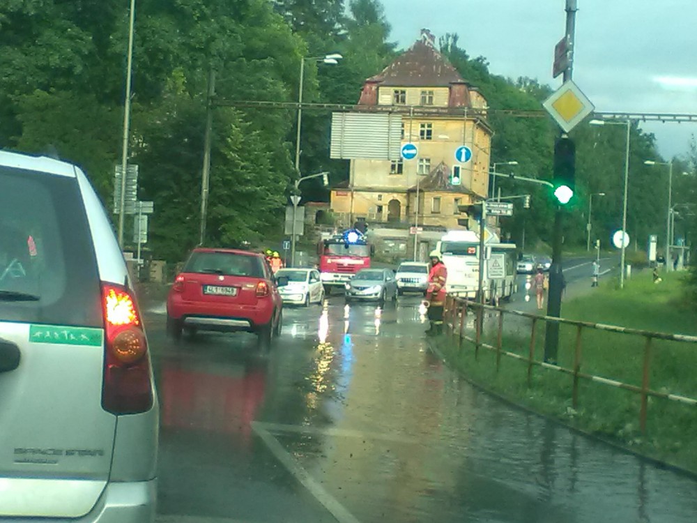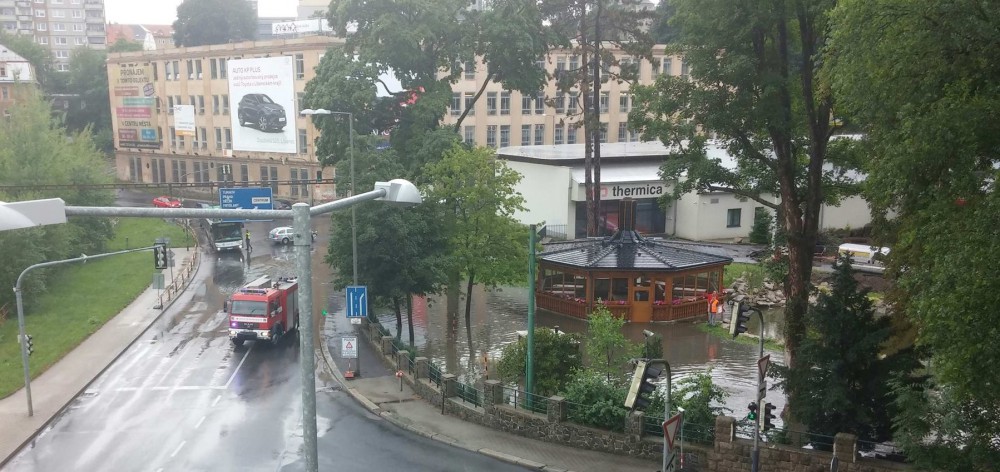 Déšť komplikoval dopravu v Liberci, voda zaplavila několik ulic v centru města.