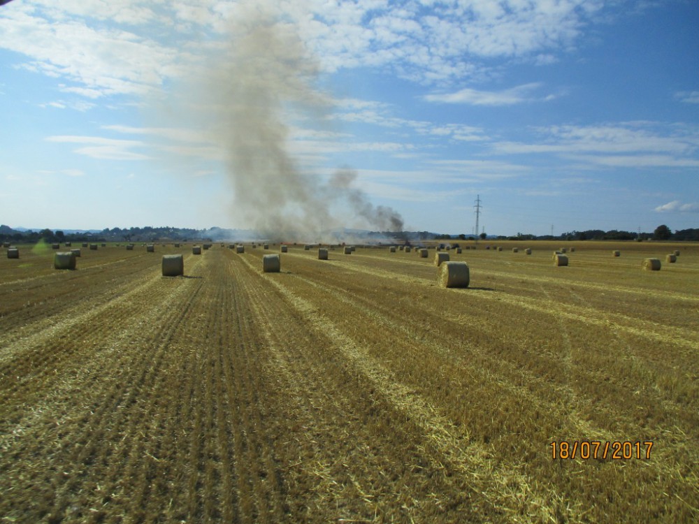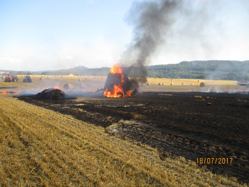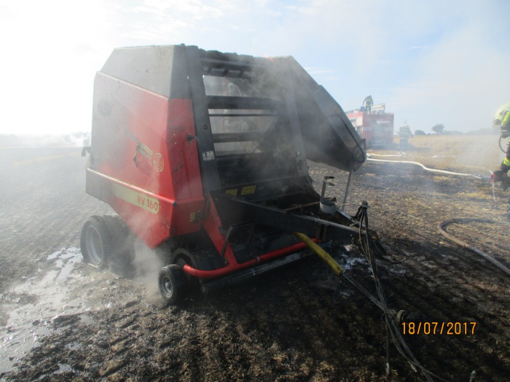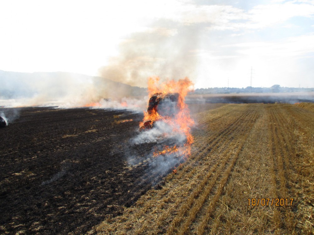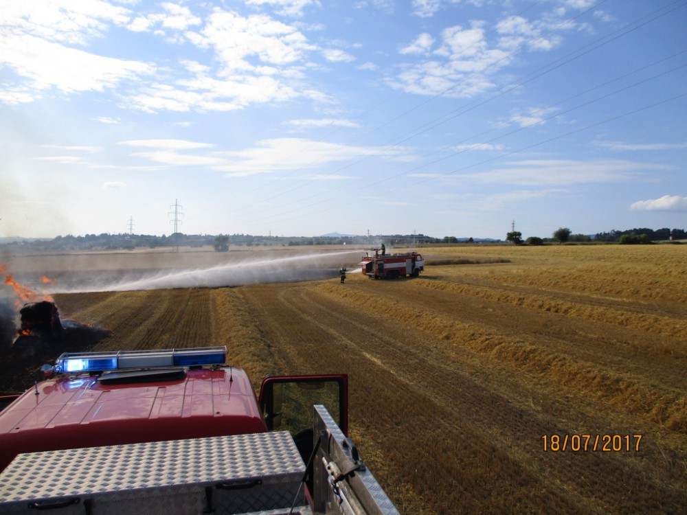 FOTO: Požár lisu na poli v Sedmihorkách zaměstnal čtyři jednotky hasičů
