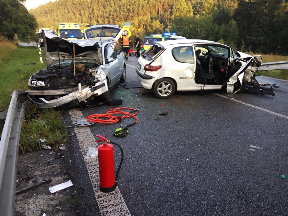 U Lemberku se srazila dvě auta. Sedm lidí včetně dvou dětí se zranilo