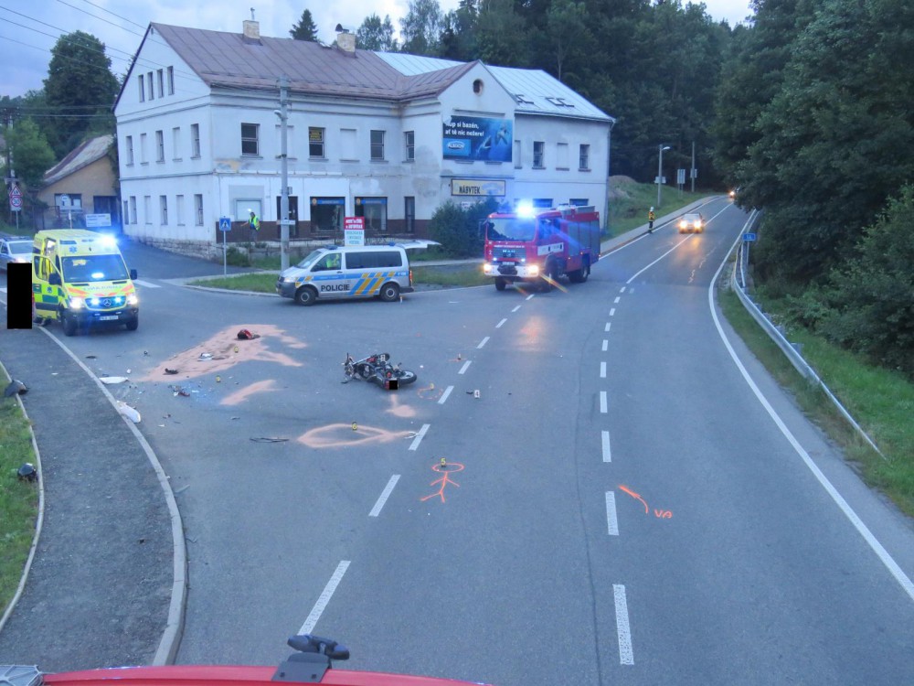 Řidička nedala přednost motocyklistovi. Toho připojeného na přístroje transportoval do nemocnice vrtulník