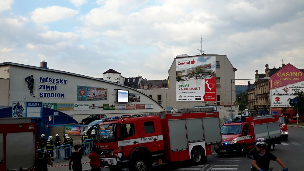 Na zimním stadionu v Jablonci unikl čpavek. Zásah trval hodiny, jeden člověk se ho nadýchal