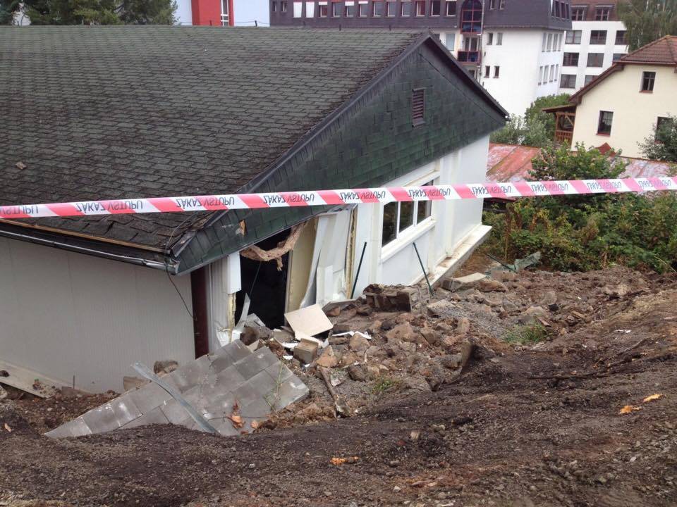 Policie vyšetřuje sesuv zeminy na tiskárnu v Semilech.