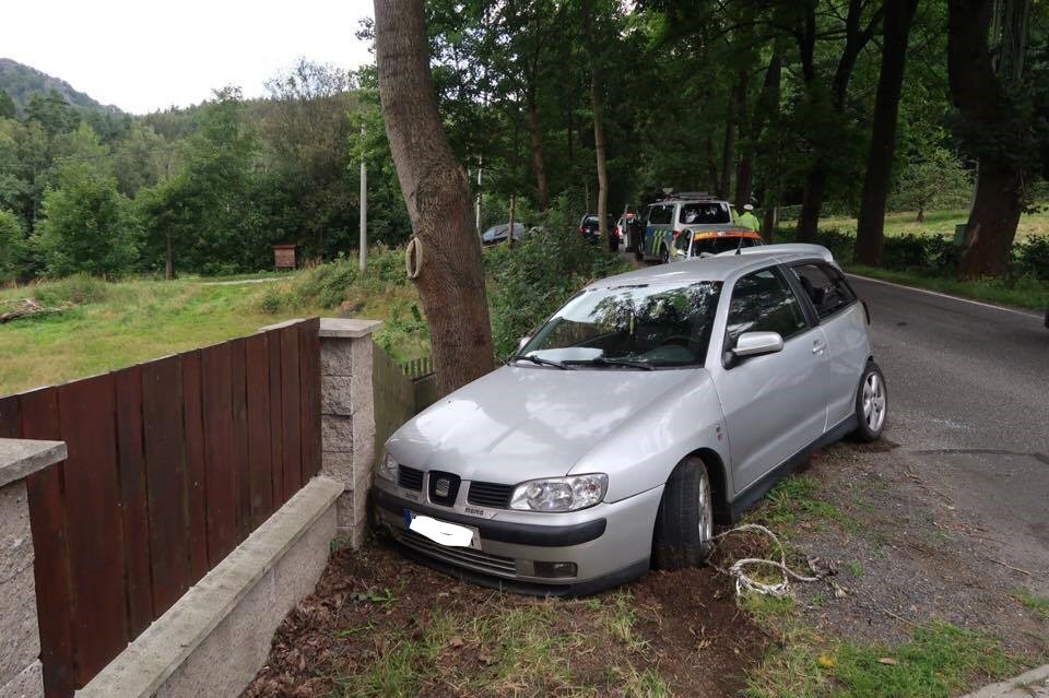 Řidič zdemoloval své auto o zábradlí v Oldřichově, nehoda se obešla bez zranění.