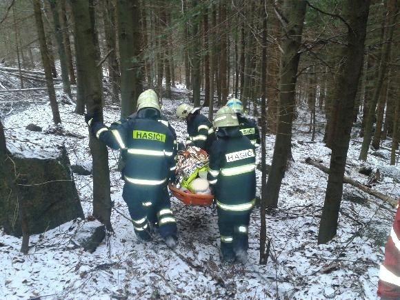 Hasiči transportují poraněného muže. Foto: HZSLK