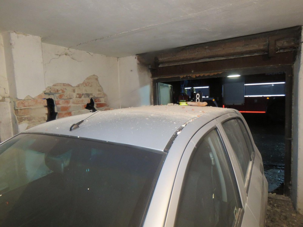 Opilý řidič vytrhl svým autem dva betonové sloupky, ty proletěly stěnou garáže jako projektily