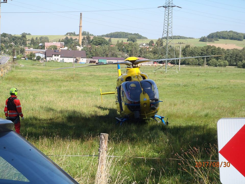 FOTO: Vážná nehoda v Dětřichově. Tři zranění, jednoho transportoval vrtulník do nemocnice