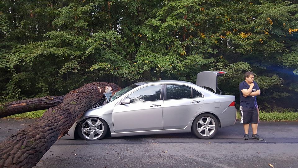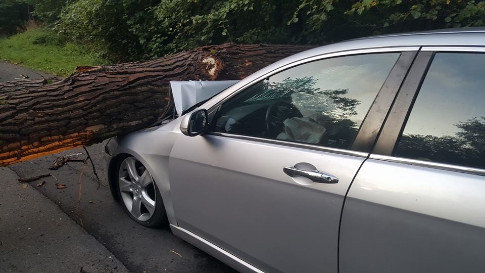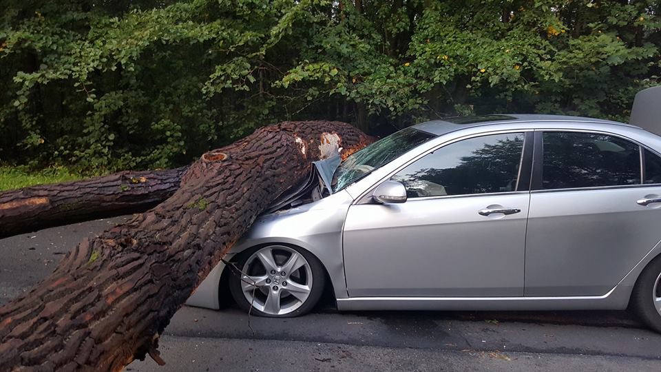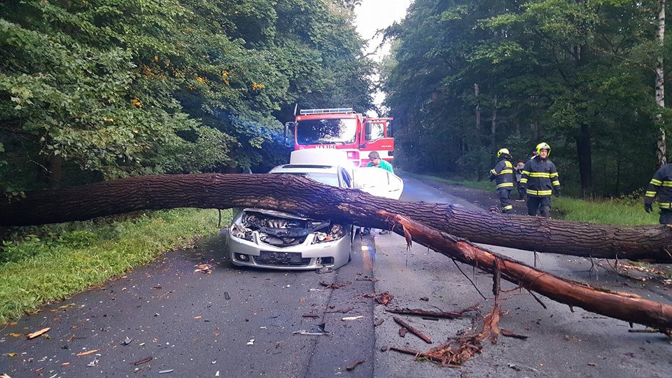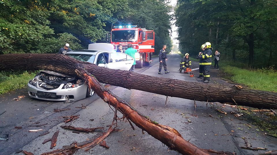 FOTO: Na projíždějící auto spadl strom. Jako zázrakem se nikomu nic nestalo