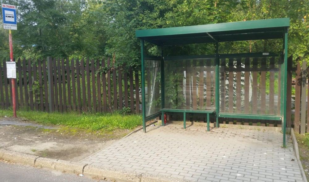 Někdo poničil dvě autobusové zastávky ve Stráži. Viníky hledá policie