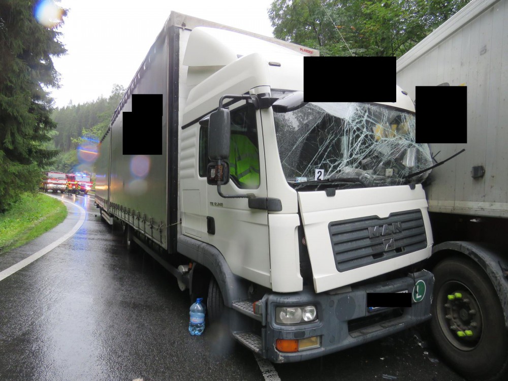 Mokrá silnice, smyk a rána. Za střet dvou nákladních aut mohla nepřiměřená rychlost.