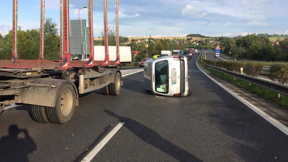 Střet nákladního automobilu a osobáku zastavil provoz na hlavním tahu na Liberec.